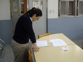 [圖十七]當今天下課之後,周老師認真地看著同學們的作品,作文老師最痛苦的時候,應該就是從下課後準備批閱文章的那一刻開始吧!